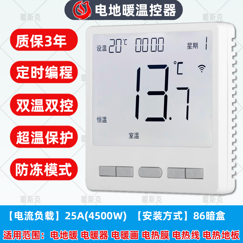 【電地暖】NSK-6619大屏編程按鍵(暗裝)25A